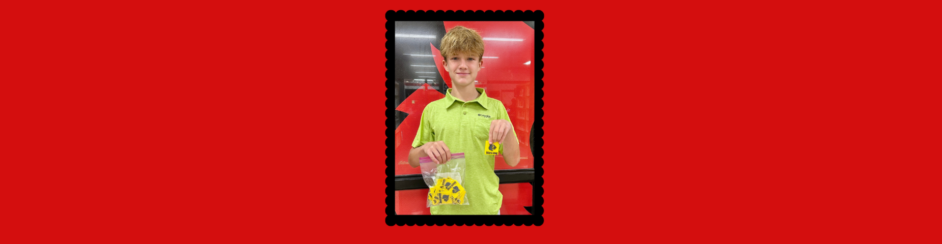 MMS 8th grader, Blake Dowdy, creates custom bag tags in Mrs. Gream's 3D Engineering & Printing Class to support Freshman Cardinal football teammate who is battling cancer.